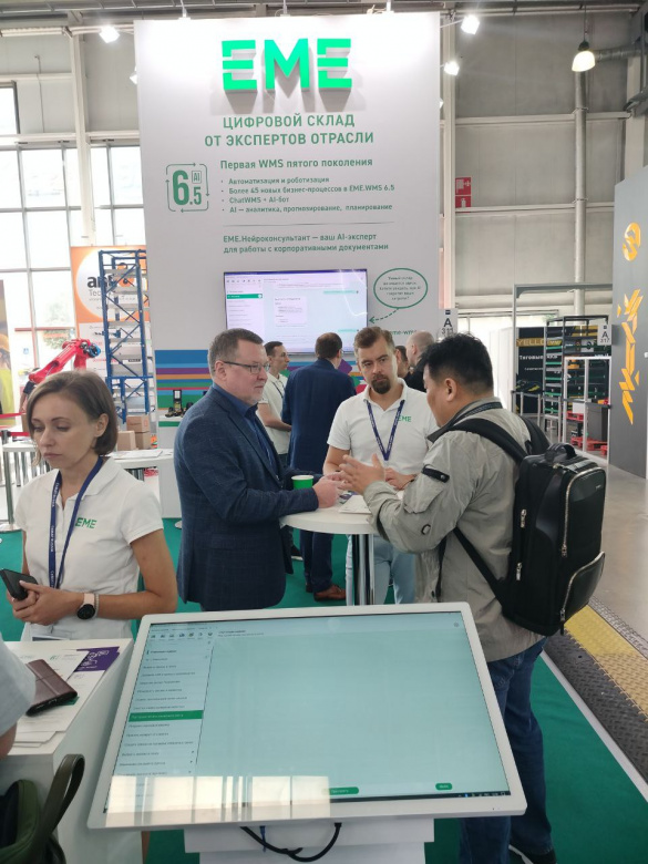 Стенд ЕМЕ находился в окружении коллег по отрасли, что только усилило интерес. В таких условиях особенно важно было показать реальную ценность продукта. И мы это сделали: гости увидели не просто эволюцию, а революционную версию EME.WMS 6.5 AI с более чем 45 новыми функциями!