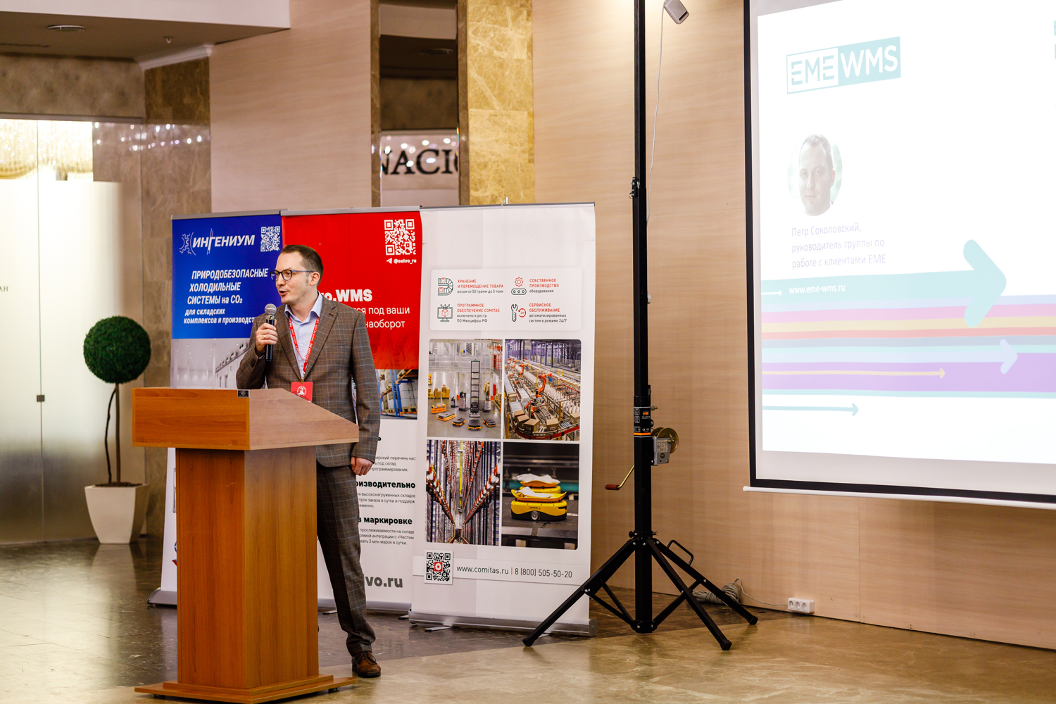 Особый интерес у профессиональной аудитории вызвал доклад Петра Соколовского, руководителя группы по работе с клиентами ЕМЕ, на тему: «Быстрое и безболезненное внедрение WMS: лучшие практики». Спикер затронул вопросы, которые интересуют компании на старте проекта. И, конечно, продемонстрировал конкретные успешные кейсы компании ЕМЕ.